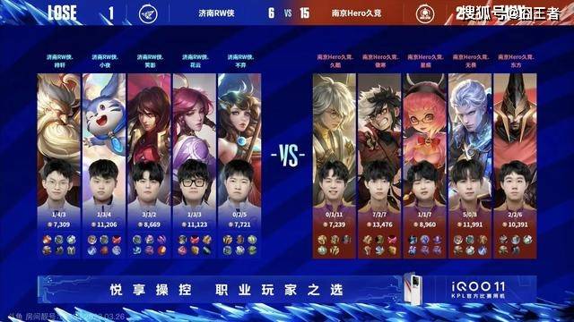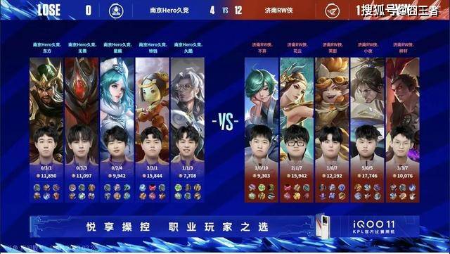 第一局比赛中,南京Hero久竞蓝色方,拿到了白起+鲁班七号。济南RW侠红色方,拿到了宫本武藏+虞姬。开局南京Hero久竞击杀虞姬,拿下一血。11分钟,济南RW侠拿下暗影主宰,吕布反手跳大,击杀对面野射,直推中路一塔。18分钟,济南RW侠上路反包,击杀对面上射,直推中路高地。决胜团,济南RW侠瞬秒白起,一波团灭南京Hero久竞,直推水晶,先下一局。