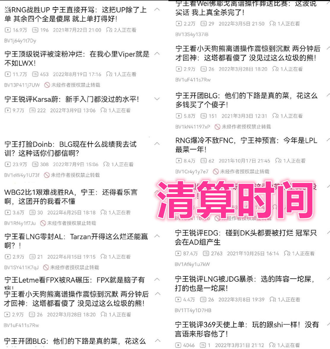 其实打得菜也不是罪,老将复出本应值得鼓励,问题是前两年宁王退役当主播的时候锐评比赛,对着选手开喷,这些过往言论被网友挖出来清算,这就没法给他洗了。
