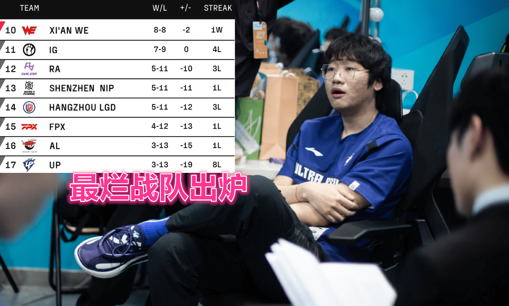 英雄联盟UP战队在LPL春季赛沦为最烂战队,八连败垫底第一,小场数负19彻底摆烂,实在是想赢都难。