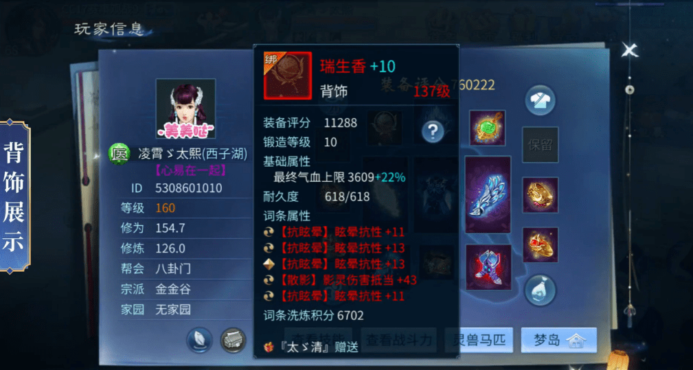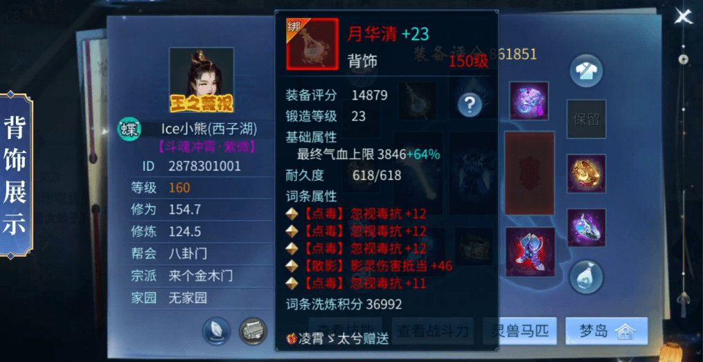 能否跟大家分享下西子湖各个职业的背饰和装备打造?