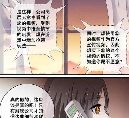 是这样,公司高层无意中看了您的视频,受到了视频中抢亲情节的启发,想在游戏中增加抢亲玩法。。。。。。同时,想使用您的视频作为官方宣传视频,因此想买下您这个视频的版权,不知道您愿不愿意?