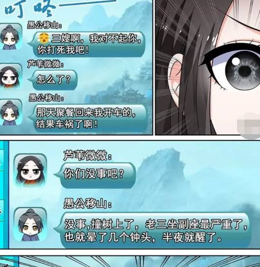 愚公:那天聚餐回来我开车的,结果发生车祸了啊!!芦苇微微:你们没事吧?