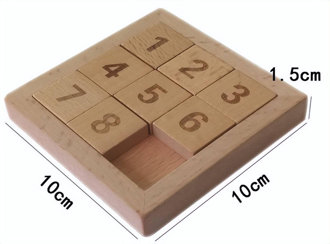重排九宫是由九宫图演变而来的,底部是一固定正方形木盘,制八块木板,分三行置于盘内,在木板上标注1、2、3、4、5、6、7、8,空出右下角的一格。进行重排九宫游戏时,以空格开始,移动小木板,使之成为一定的图形,并且还要使其从纵、横、斜方向相加都能得出相同的数字。