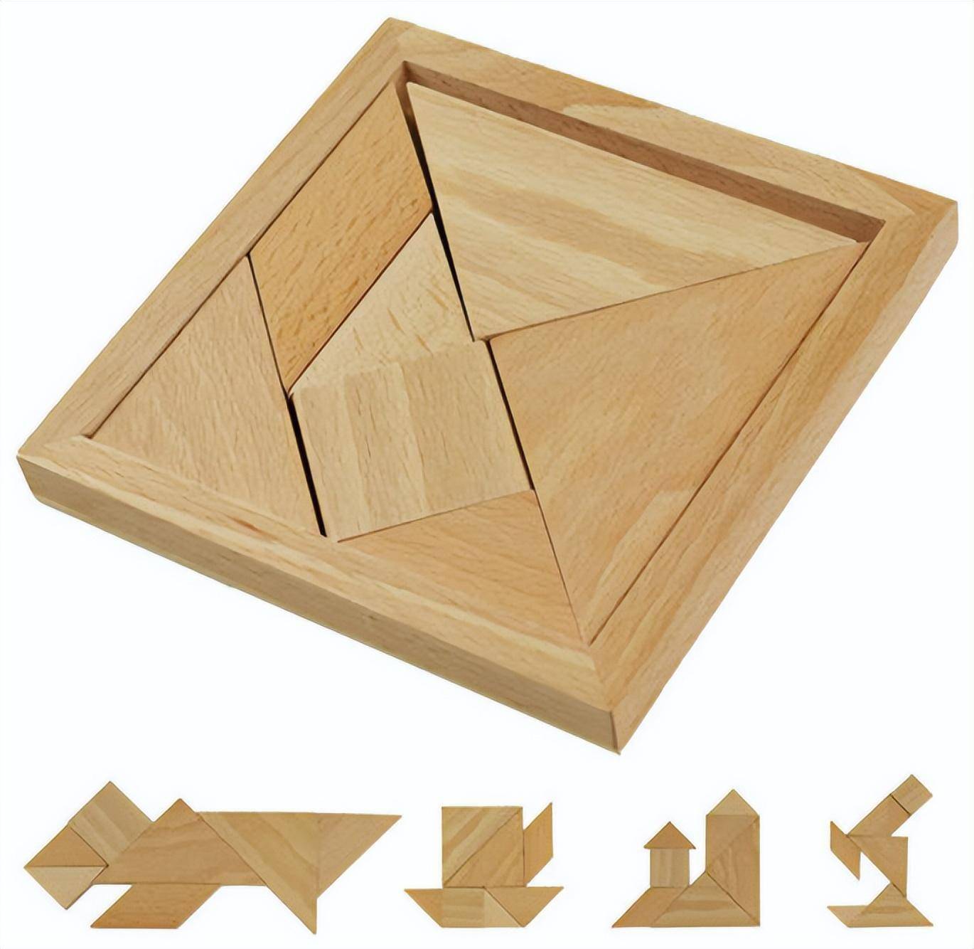 七巧板是基于《燕儿图》《蝶儿谱》产生的。初期的七巧板都是由木板制成的,后来演化为厚纸板。七巧板是一个正方形,内部被分为七块,分别是两个大的等腰直角三角形、一个中等的等腰直角三角形、两个小的等腰直角三角形、一个小的正方形和一个平行四边形。清嘉庆年间的《七巧图谱》和光绪年间的《中西益智图》,对七巧板的制作和玩法都做了详细的介绍。做游戏时可利用七块木板组成各种图案,但还是有一定的规则,在拼图形时,必须把七块木板都用上,不能直立,不能重叠。简单易操作的七巧板在当时就吸粉无数,现在也博得不少孩子们的喜爱。
