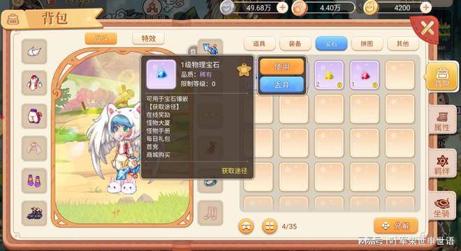 这里建议大家可以直接在商城购买,宝石数量足够还可以合成高级宝石,而且更换装备后宝石可以完美继承,购买了也不会吃亏。大家可以根据职业需求购买相应的宝石。这里小编要提示下,没有装备的部位也是可以安装宝石的哦^^