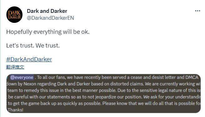 发行商Nexon据称已向奇幻风多人对抗地牢冒险游戏《Dark and Darker》的开发者Ironmace Games发出停止和终止信函,导致该作(暂时)从Steam下架,此前《Dark and Darker》被指控抄袭了Nexon的已取消项目《P3》。