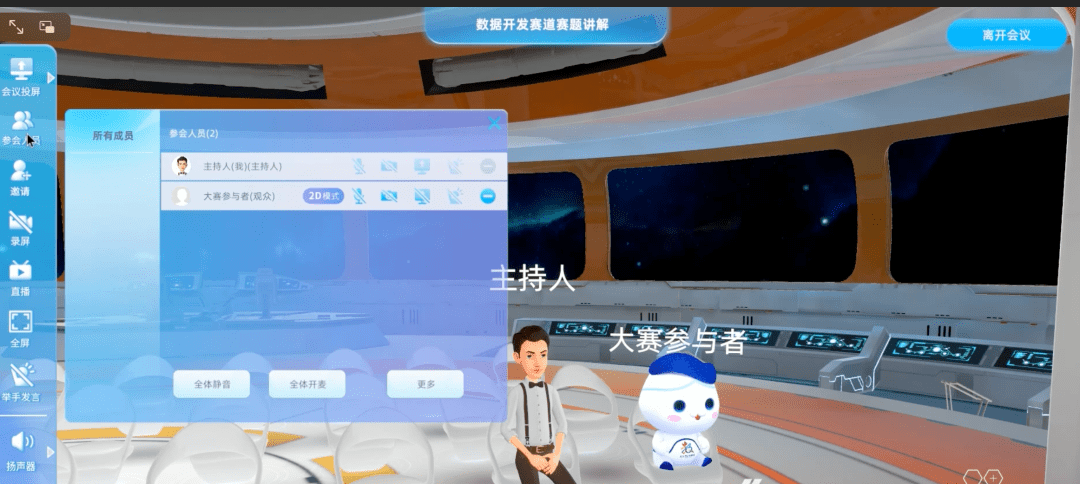 赛道展区内,作为体验官的你可以了解各赛道赛题情况、宣传资料、参赛作品等信息。展区还设置了赛道内部交流的专属会议区及文字聊天室,为同一赛道朋辈交流或团队内部交流提供私密空间。如果有特殊需要,大型会议厅还可举办赛事评审会议,通过线上会议系统组织参赛选手汇报和专家评审,满足各赛道需求,并将会场画面直播到场外。