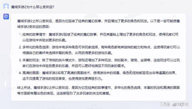 原标题:AI对决:当我问魔域手游2为何受欢迎,chatGPT和文心一言大答案却截然不同