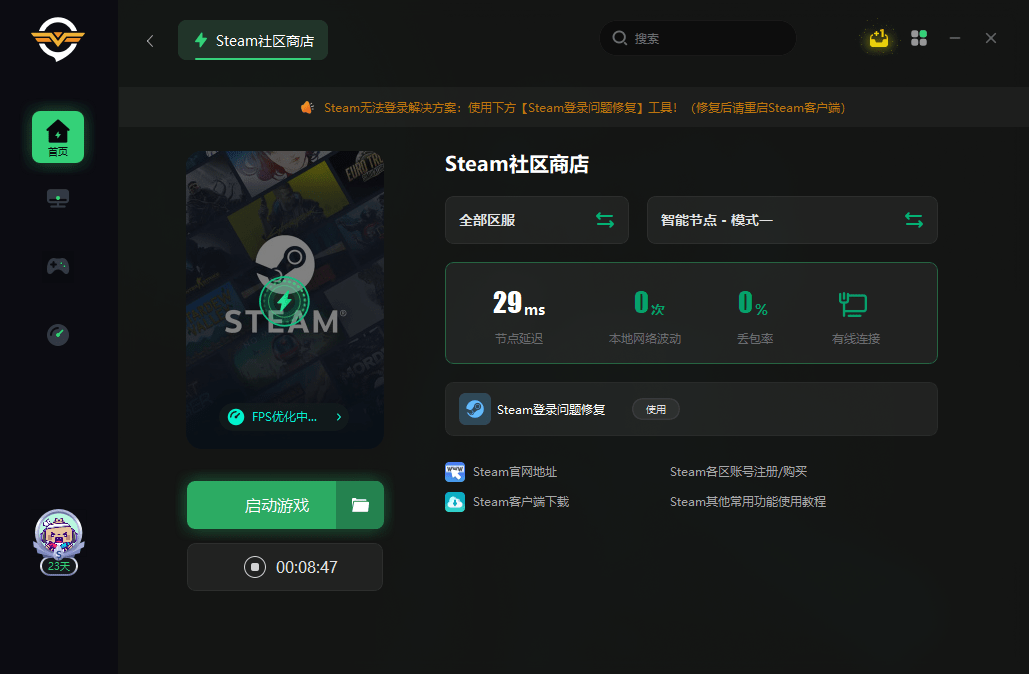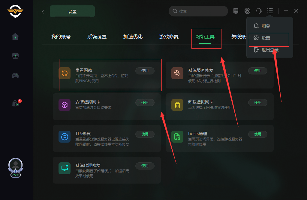 如果steam商店出现错误代码-102,那么这说明您电脑中的TLS可能出现了问题,我们需要将TLS进行修复T,奇游加速工具的网络工具栏中,拥有TLS修复的功能。