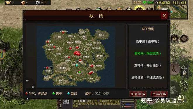 说到绝世武功就不得不提起一个关键性的NPC-老和尚,大侠们从地图的NPC里就能找到,自动寻路就可以了。