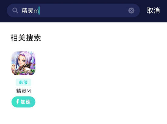 第三步:在搜索结果中点击即可开启游戏一键加速,加速完成后即可成功进入游戏进行账号注册了