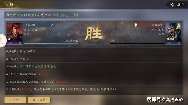 本以为攻城战会打得很辛苦,没想到咱这回刚好是趁虚而入,守将颜良的手底下都没带几个兵,我这边1万骑兵背靠着3万弓箭手,一波冲锋就给拿下了。要是对方的箭塔数量足够庞大,前面的骑兵肯定得全部报销,建议各位打攻城战之前还是最好准备足量的投石机和冲车,不然战损实在是令人心疼。