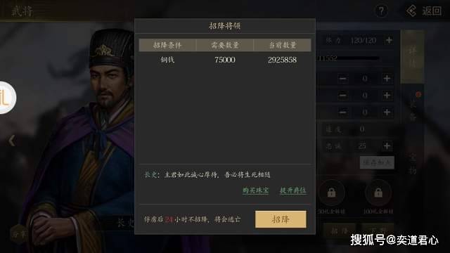 好在颜良的忠诚度出现了下滑,根据游戏设定的招募规则,三国名将的忠诚度必须降到50点以下才能被活捉招降。只能说文鸯没找到,颜良倒是能够反复锤几轮争取拿下。