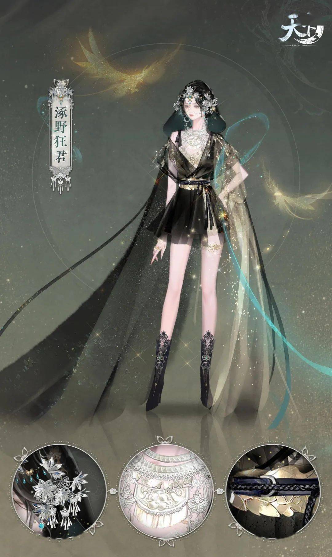 黑纱斗篷上绣彩斑驳