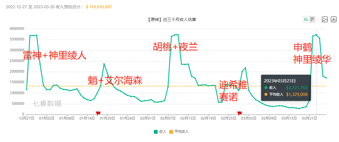 原神3.5版本下半段卡池已经开放一周左右了,作为曾经流水不佳的申鹤,以及卡池开放时间曾经很长的神里绫华,没想到她们的流水是相当的高,与前面2个版本的神池几乎持平了。