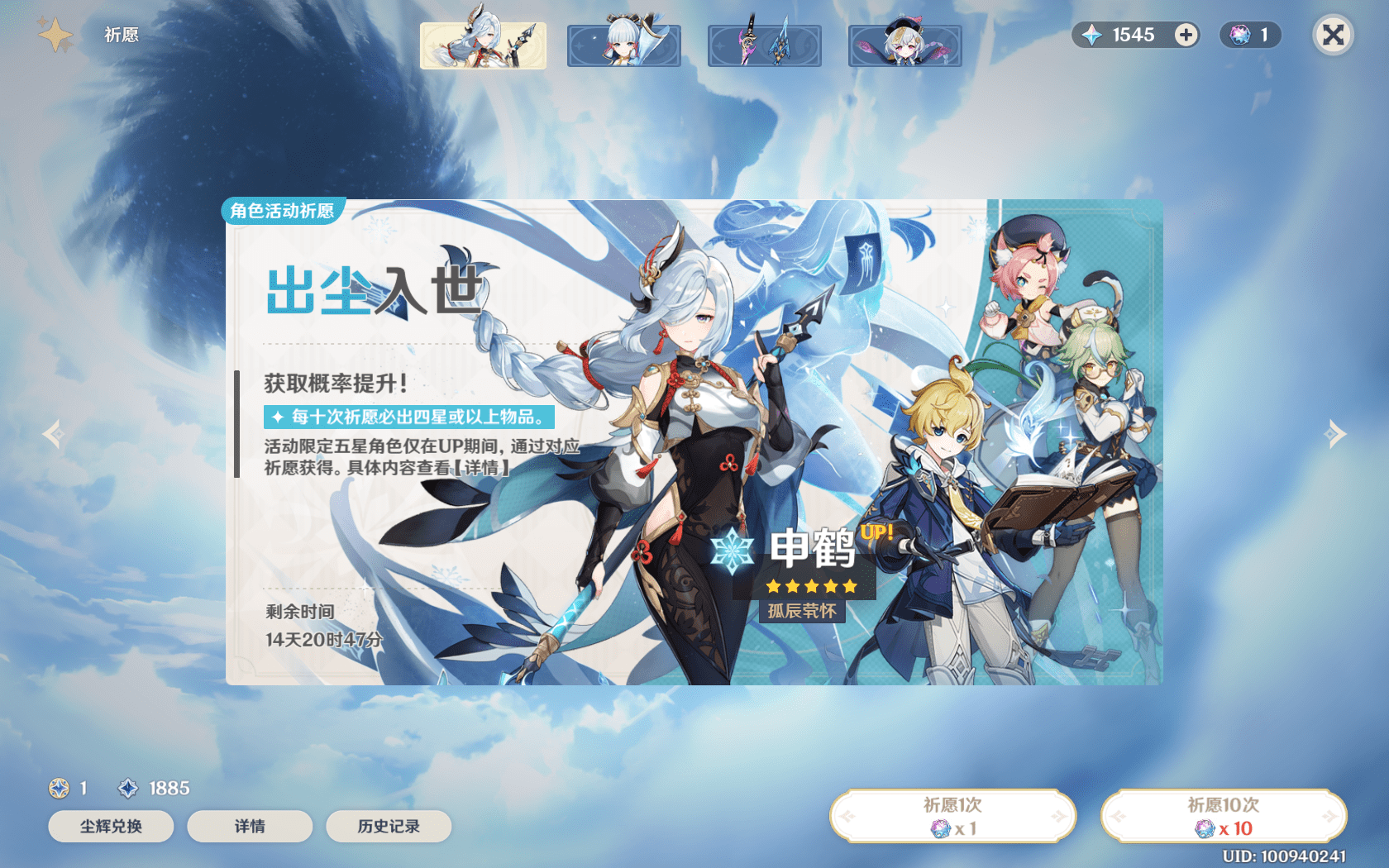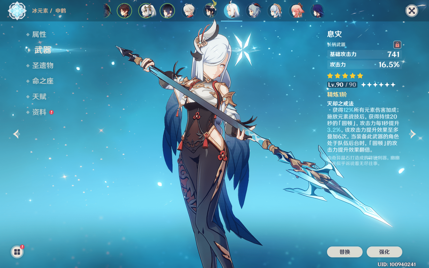 接下来则是先抽申鹤,再考虑专武,因为申鹤本身就是专属冰辅,机制上跟大小姐更是绝配,可以让大小姐的输出更上一层楼,效果远高于专武。