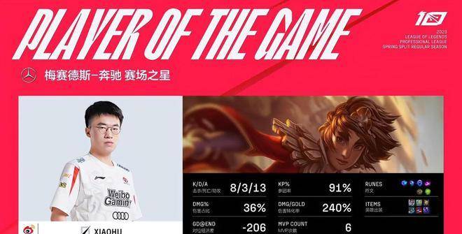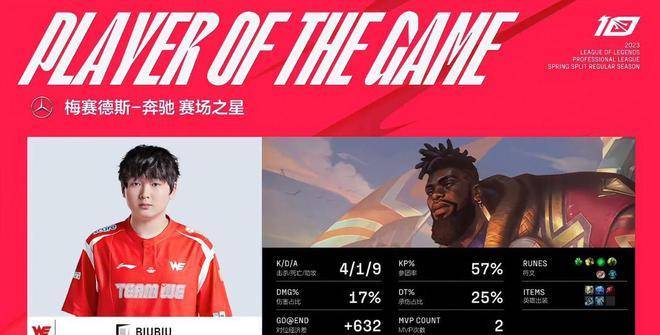 MVP给到了BiuBiu,不但上路忍辱负重完成反单杀,团战端亦有关键贡献。