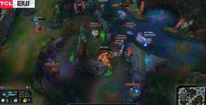 此后WBG主控上半区,帮助Theshy打出不小的压制,下半区则是WE控下小龙,并且下路4包2越塔击杀烈娜塔。