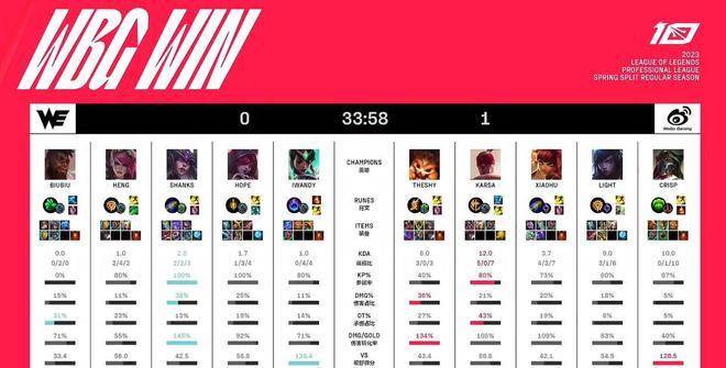 赛后数据,Theshy纳尔送出全场最高的输出,疯狂折磨BiuBiu。