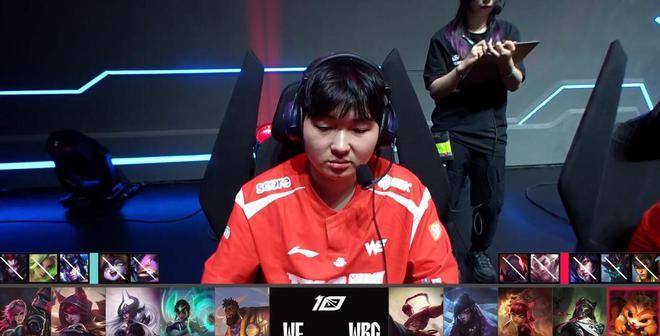 WE针对到打野位,自己一手抢下蔚,搭配上霞、辛德拉的双C,WBG也是乐于做这样的交换自己用放出蔚交换到了盲僧,随后点出厄斐琉斯、安妮。