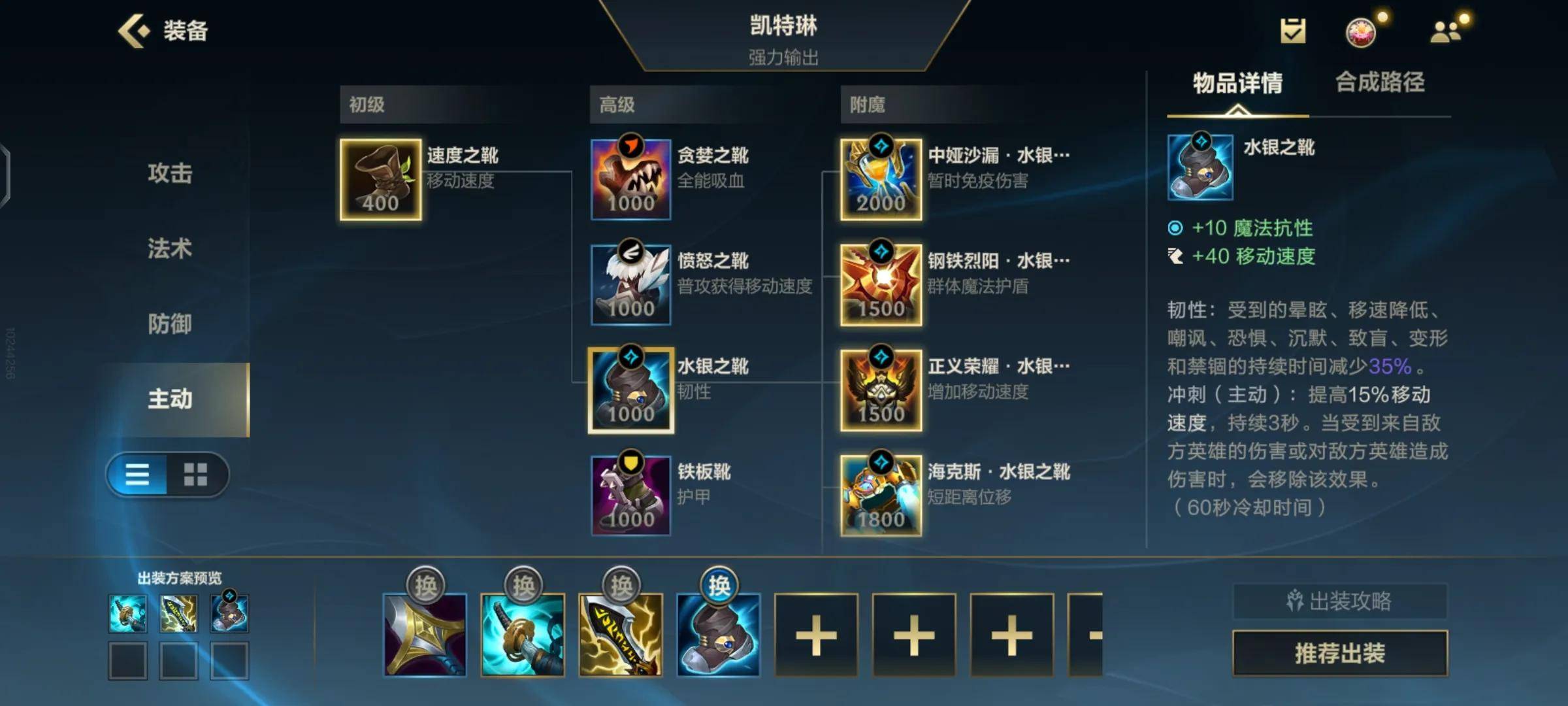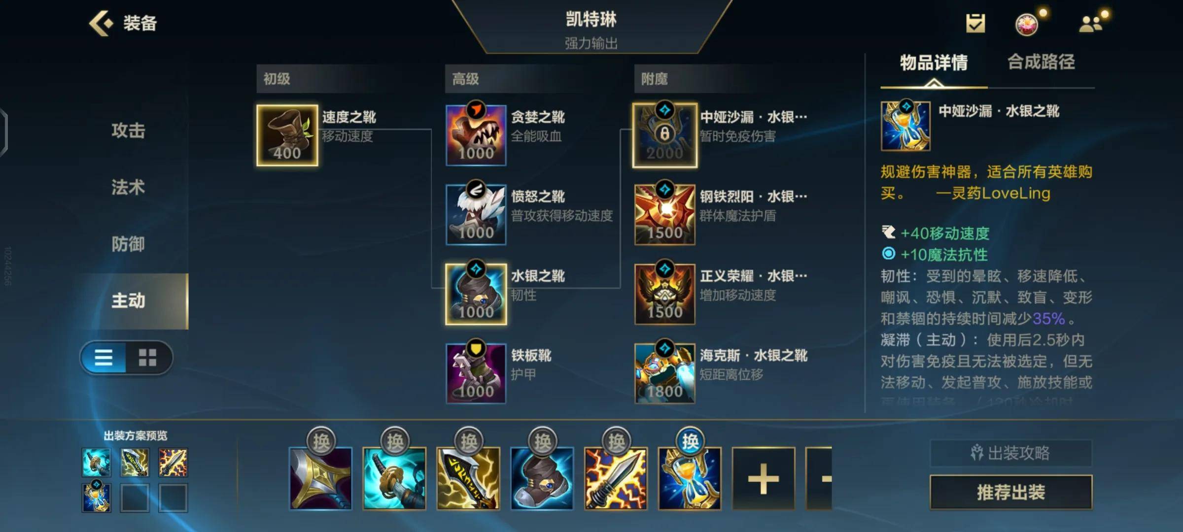 但是不排除对方阵容控制过多,这个时候我们就要适当的选择水银鞋。