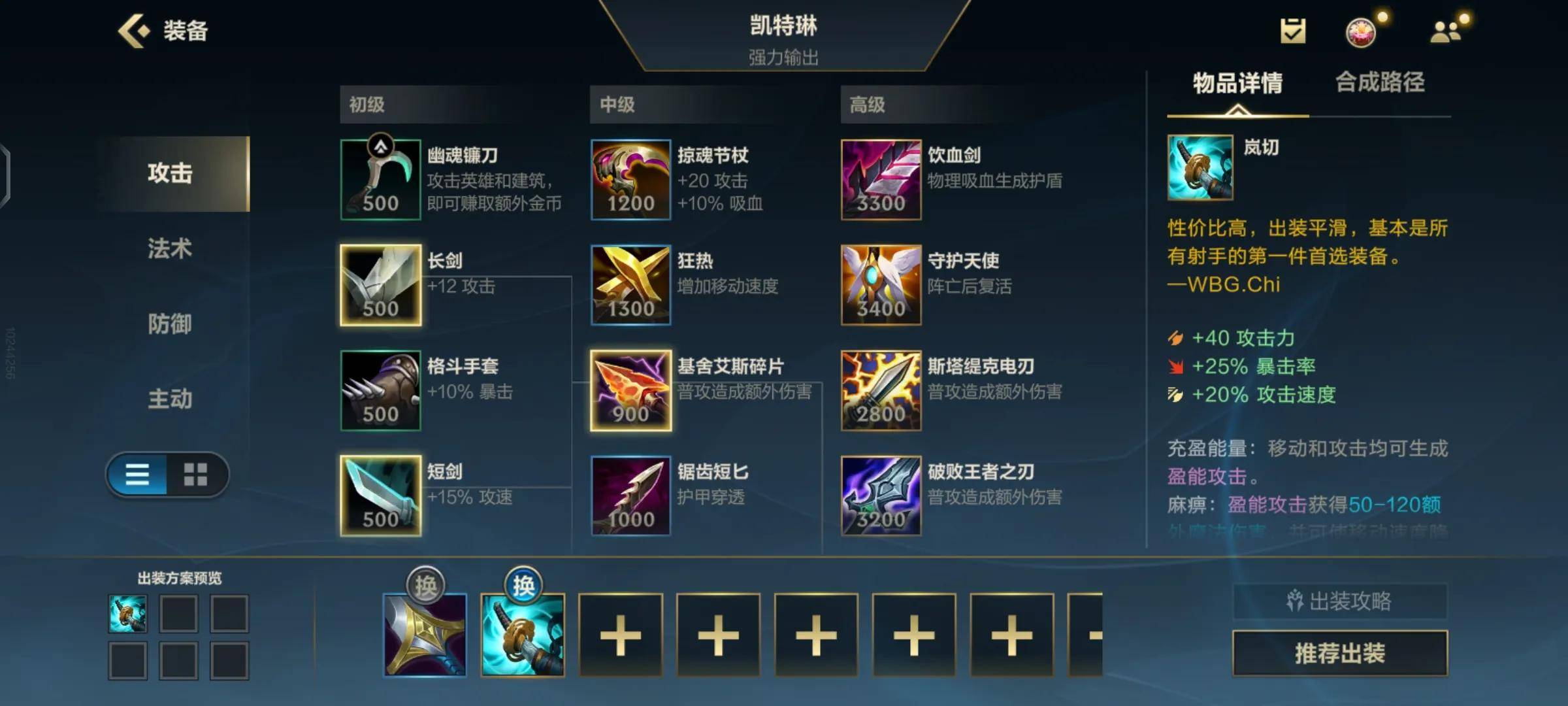 所以我最终推荐大家出这套装备,这套出装前期合成起来比较平滑,有一定的攻速,玩起来手感上面也很丝滑。