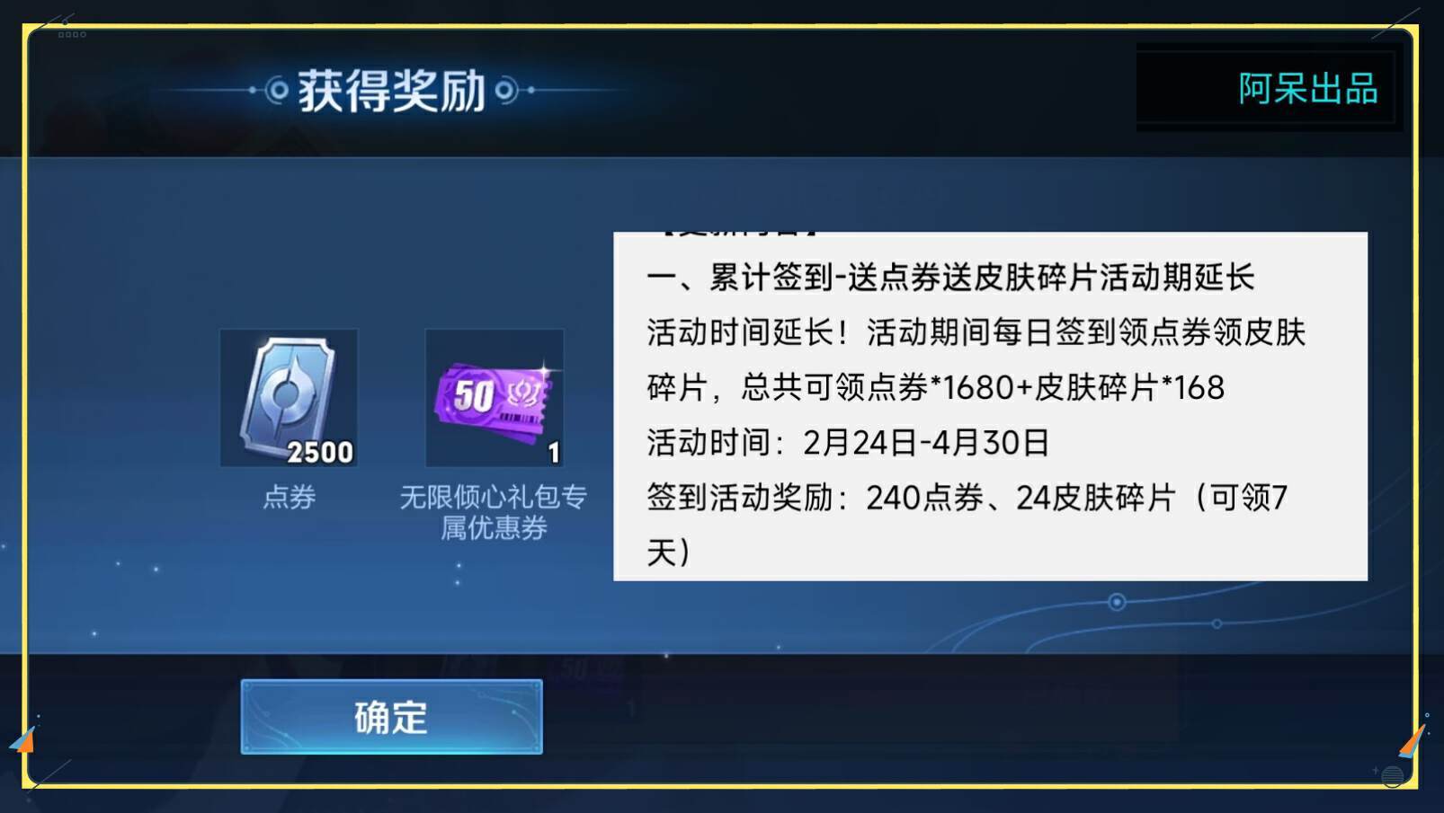 简单来说就是每天登录游戏,签到即可领取240点券和24个皮肤碎片,不过最多也就七天,一共可以领取1680点券和168个皮肤碎片。