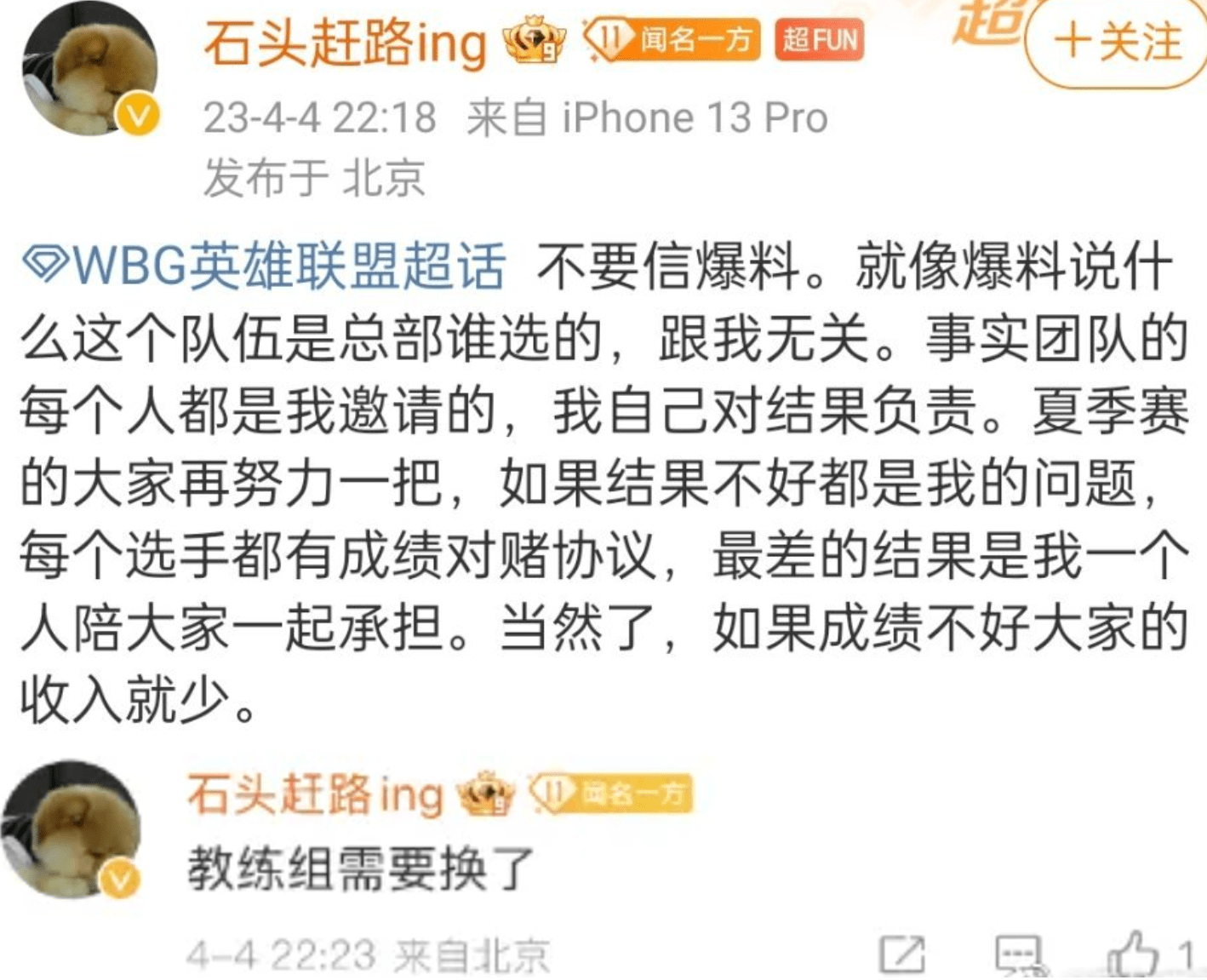 那么大家对于WBG老板透露对赌协议换教练的这件事有何看法?欢迎留言,分享你的看法!