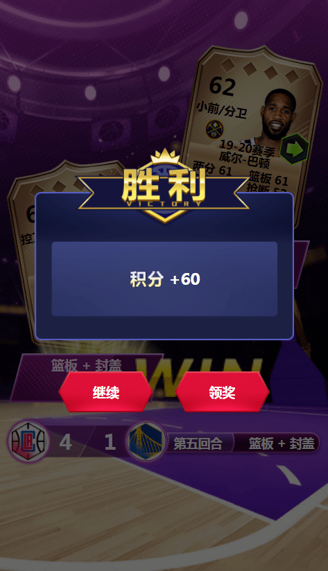 玩家每次提升球队战力均可获得对应阵营的宝箱*2的奖励(即选择 太阳队为太阳队宝箱、选 湖人队则为湖人队宝箱)打开宝箱就有机会获取球员金卡或巅峰卡的奖励。