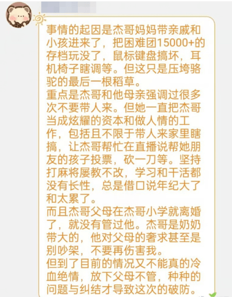 不过这件事最让人血压升高的地方,还是在于桀哥曾多次跟母亲强调过这件事,但并没有起到效果。仿佛在非游戏玩家的眼中,游戏本身就缺乏严肃性。所以并没有考虑到,物品所有者的感受。