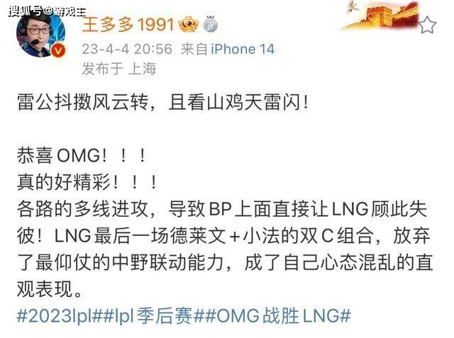 大家好,S13赛季的比赛已经正式开始了,相信绝大多数的玩家都关注了最近一段时间的春季赛,lpl赛区的对抗是非常激烈的,lng战队和OMG战队的比赛成为了很多玩家关注的焦点,在此之前,OMG战队击败了tes战队,是让很多的粉丝非常意外的,而他们的上单选手山鸡也一鸣惊人,成为了备受瞩目的上单选手。在面对lng战队的比赛中,OMG战队的发挥依旧出色,3比1成功击败了对手,拿到了复活甲,小奶油在lng泉水门口狂亮弱爆了,表情也是火了起来,当时的lng战队就是因为scout才拒绝了他的加入,王多多的作诗真的是更上一层楼了。