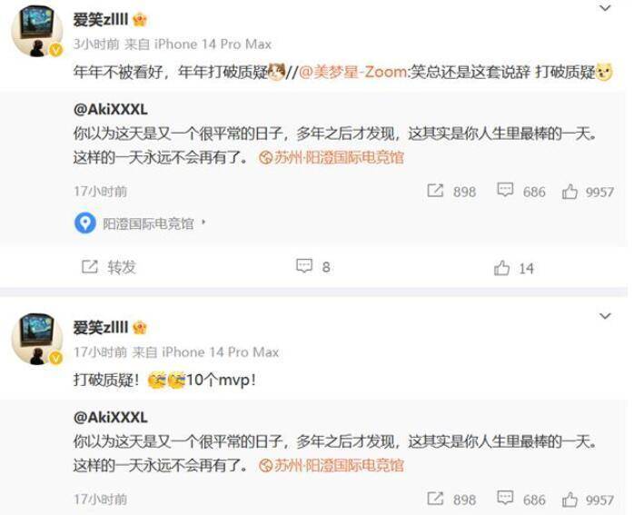 最终这场比赛TES输的很惨,在比赛结束后,井盖也是发文表示庆祝,而aki和OMG战队经理也纷纷出来转发,并且说出自己想说的话,这些话是什么意思大家只能自己去体会了,总之嘲讽回来的感觉确实很爽,小编之前也说过,赛前说得越狠,赛后有可能就要被喷得很惨,这是一定的,对此你们有什么想吐槽的吗?