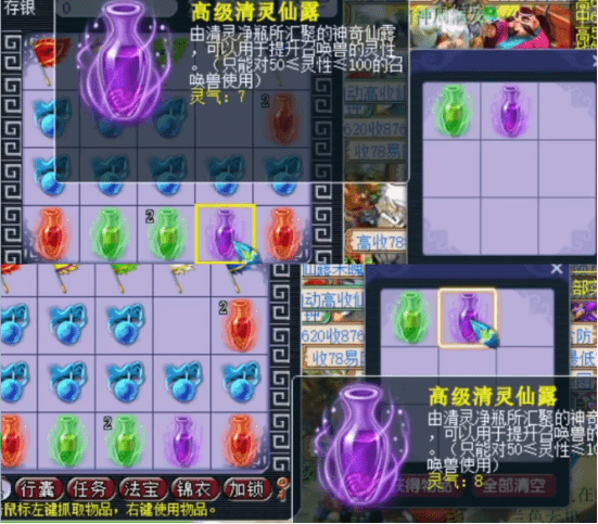 有的玩家,两张高级藏宝图,不仅挖到了深受小伙伴们喜欢的高级魔兽要诀,还挖到最受小伙伴们喜欢的高级召唤兽内丹;还有的玩家,一共就开了10个清灵净瓶。却轻松获得高7和高8的清灵仙露!你们羡慕吗?