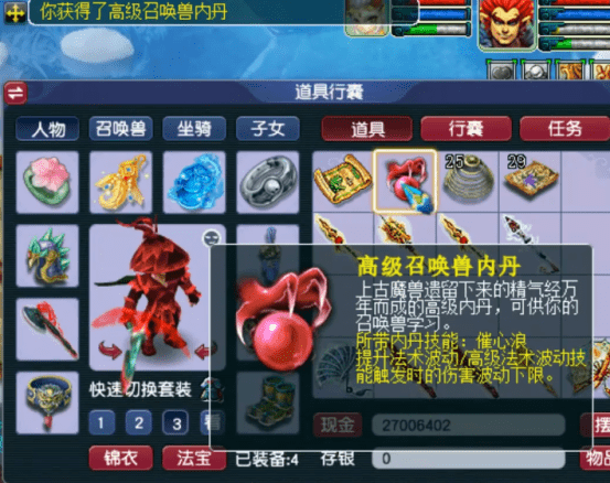 更让人万万没想到的是,第2张居然又挖到了最受小伙伴们喜欢的高级召唤兽内丹!这运气,不羡慕都不行。