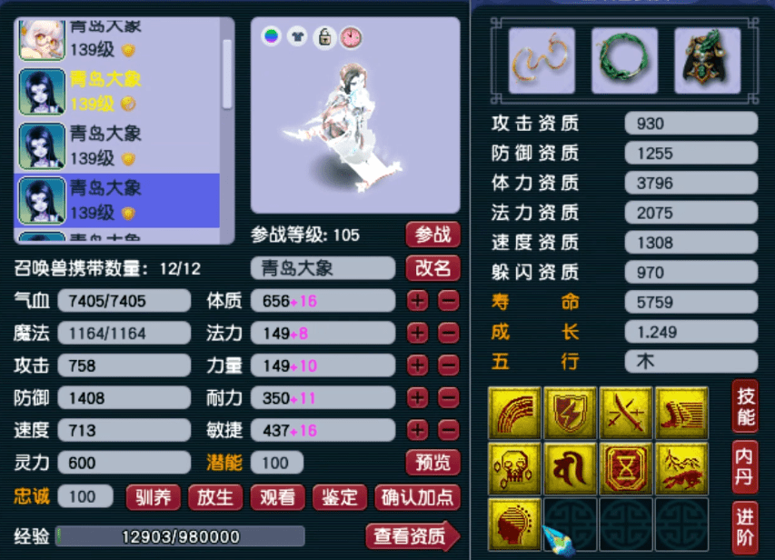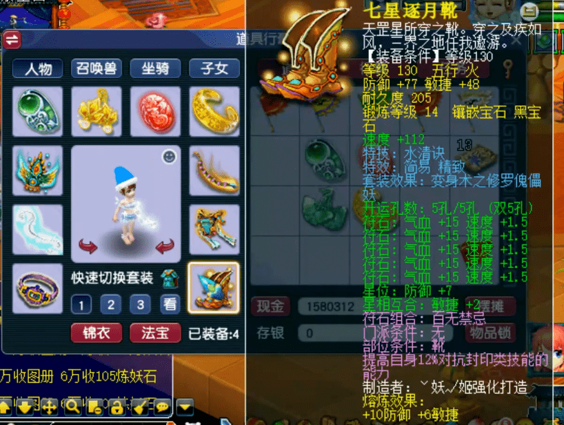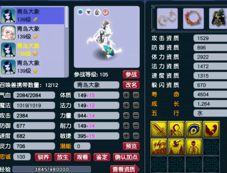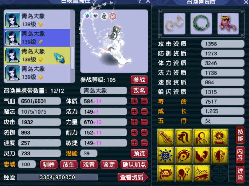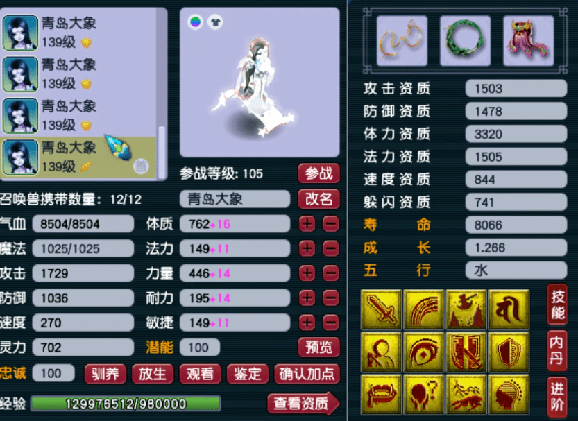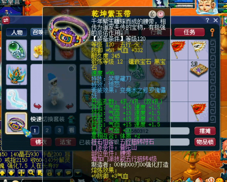 纵观玩家全部装备,虽然没有一件是无级别限制,但是却全部都拥有特技特效!当然了,玩家的召唤兽同样非常极品!