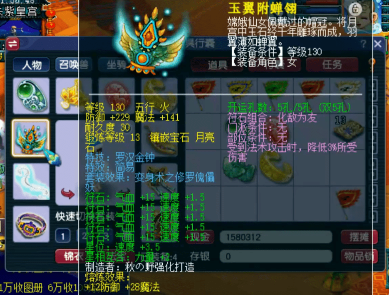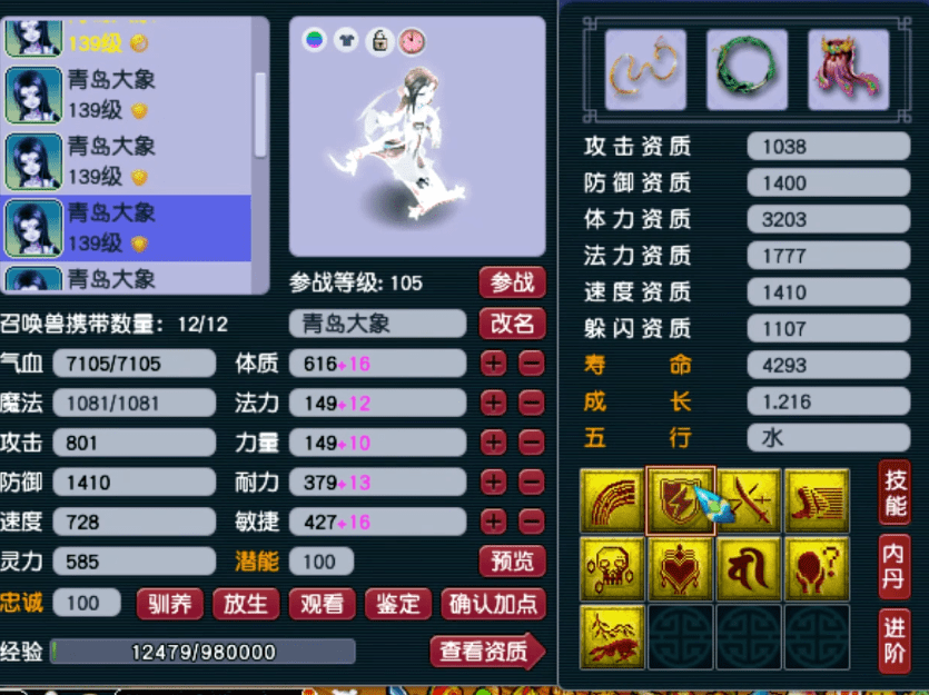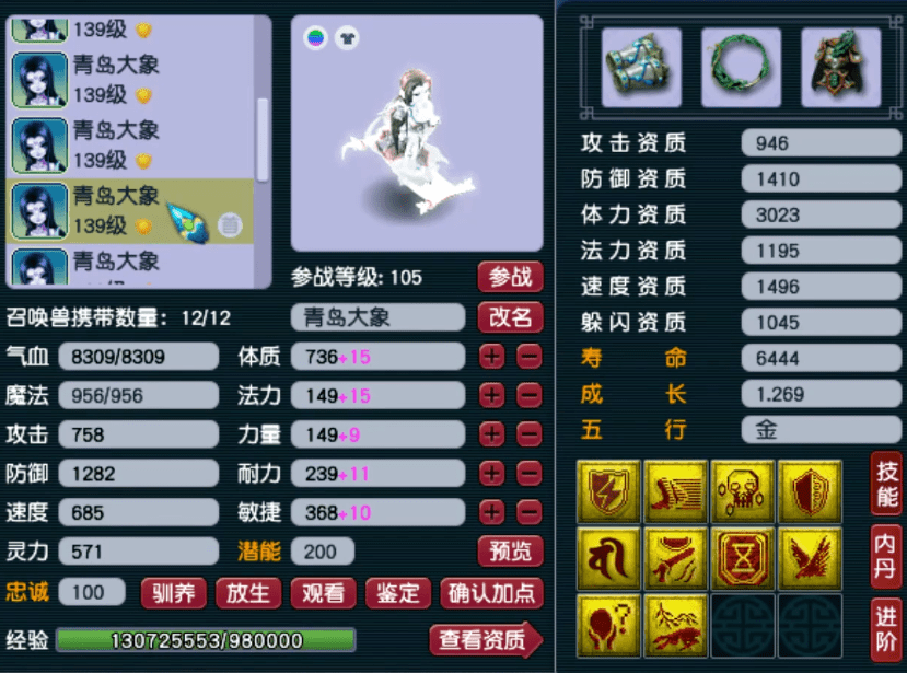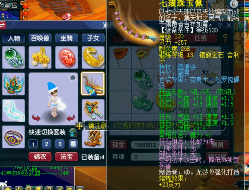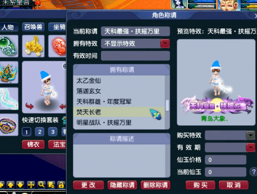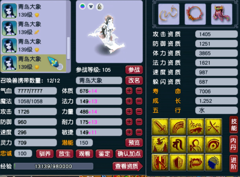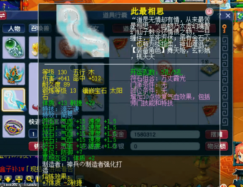 纵观玩家全部装备,虽然没有一件是无级别限制,但是却全部都拥有特技特效!当然了,玩家的召唤兽同样非常极品!