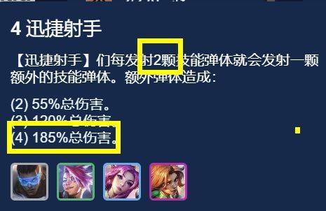 阵容解析:这里小嗨给大家介绍一下迅捷射手羁绊,是每发2颗技能就会发射一颗额外的技能弹体,这个弹体会基于技能的185%伤害,相当于每2次技能就会额外多一次2倍伤害的技能,这就是伊泽瑞尔、卢锡安能够当主C的关键!