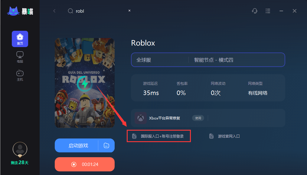 使用baomiao加速 器加速Roblox,点击进入国 际 服入口。