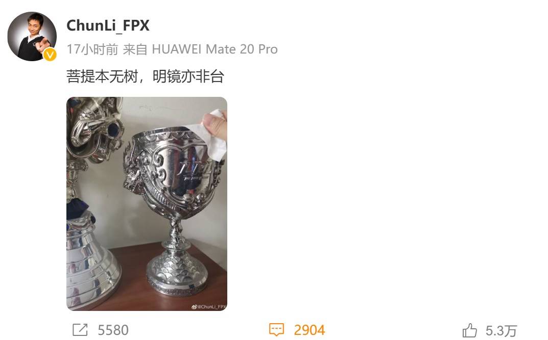随后FPX的老板直接用奖杯回应BLG经理,OMG爱笑和icon也在下面力挺。