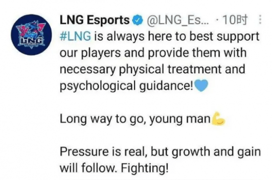彼时的PandaC甚至在二队都不是第一选择,结果却要承担赛区顶级选手所带来的压力,这让很多网友看到打得不好的选手时,第一次没有选择“火力输出”。当时的对局情况,甚至连外网的观众都看不下去了。LNG的官推遂发布了动态,表示会给选手安排必要的心理辅导。