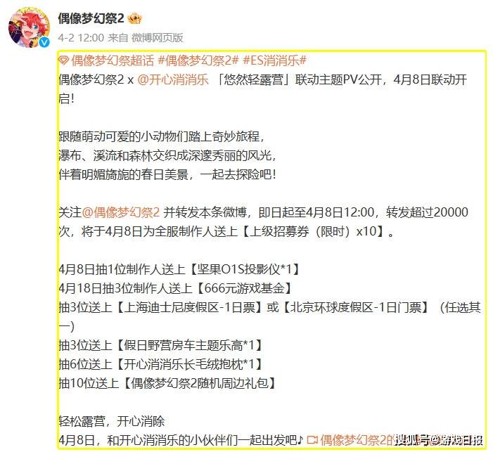 在联动福利这块,《偶像梦幻祭2》也特别大气。不仅在联动开启后给玩家们准备了成堆的游戏礼包,还搞了个抽奖活动,迪士尼和北京环球度假区的门票说送就送,我是做梦都没想到平日里一票难求的景区居然能在游戏官方这白嫖?话不多说,已经冲向官方转发抽奖了!