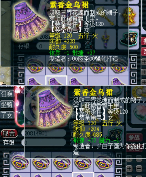 另外5件女衣服,虽然没有蓝字,但是有两件都加敏,而且数值还非常不错。这样的装备,深受固伤玩家的喜爱。毕竟影响固定伤害除了技能、修炼、符石组合之外,敏捷点也非常重要的一个部分。
