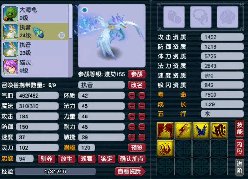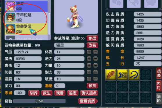 这一只执音可以直接用了,不仅成长高资质好,而且继承了须弥,连高级法术暴击都有!