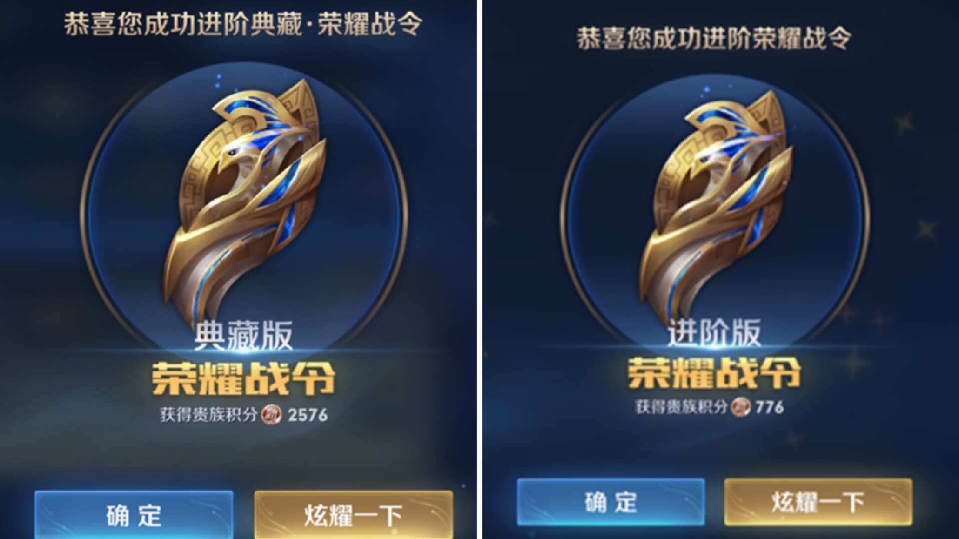 另外,购买战令还能获得双倍贵族积分,所以有条件的情况下其实也可以入手1288点券的荣耀版战令卡,当然了,这是土豪玩家的选择,普通玩家最好还是选择388点券进阶卡,这个性价比才是最高的。