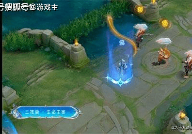 三技能:金黄的梦幻光柱冲天而起,独特宝石设计的标识显现,蓝色的莹莹之光余韵悠长。