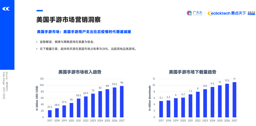 只有了解游戏,洞悉市场,把握风向,游戏厂商们才能在日趋激烈的出海竞争中脱颖而出, 广大大数据研究院与易点智库将为所有出海人造船拿桨,伴您吸金海外、扬帆起航。