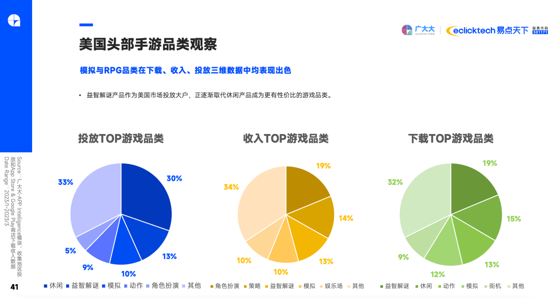 为此, 广大大数据研究院与易点智库联合撰写并发布《2023年Q1全球移动游戏营销趋势洞察》报告,与所有出海人一同解析、破解2023年移动游戏出海之路。