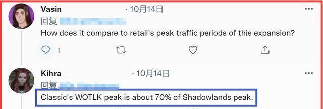据WCL的创建者Kihra对比怀旧服和正式服的玩家数据,现在WLK怀旧服的巅峰玩家数量已经接近正式服暗影界的70%!