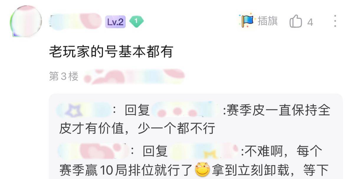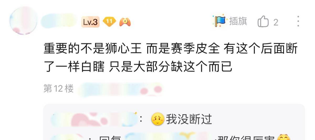 因为这部分吃瓜网友认为,像狮心王这样的赛季奖励皮肤,打到黄金段位就能有,还不需要花钱,玩家基本上都是人手一个,这怎么能称得上稀有呢?