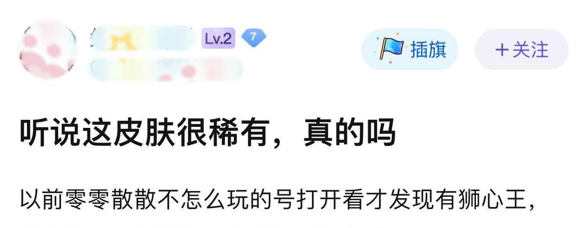 另一部分吃瓜网友则认为,狮心王这款皮肤,相比起王者荣耀里的其他皮肤来说,已经能算得上是稀有。